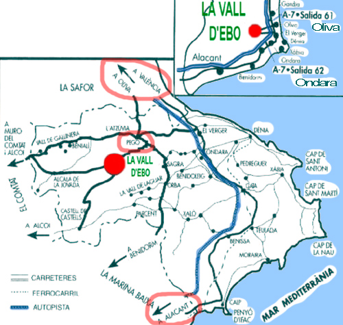 derecha encontramos el desvio a la Vall d´Ebo.